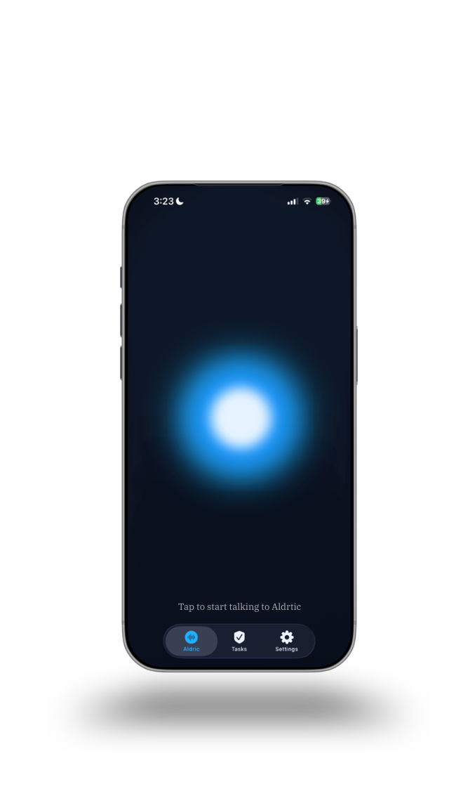 No menus. No typing. No app switching. Tell Aldric what you need like you’d tell a person. He hears through your glasses, your phone, or your earpiece. Full-duplex — he won’t interrupt, but he’s always listening when you need him.